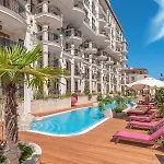 - ❓Harmony Suites Saint Vlas Sveti Vlas hangi olanaklara sahiptir?Harmony Suites Saint Vlas Sveti Vlas misafirlerine antialerjik odalar, güneş terası, jakuzi sunulmaktadır.